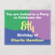 Invitación para una fiesta de cumpleaños especial con nombre y número de años. Invitación para una fiesta para un niño de 8 años. Agrega tus propios detalles.