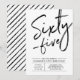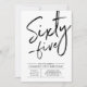 Celebra tu día especial con esta sencilla y elegante invitación de cumpleaños número 65. Este diseño presenta un "sesenta y cinco" con letra de pincel en un diseño limpio con combinación de colores negro y blanco. Más diseños disponibles en mi tienda BaraBomDesign.