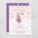 Tarjeta de invitación para cumpleaños unicornio