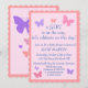 invitación a la ducha de bebé para chica con texto dulce, original y mariposas rosas y púrpura