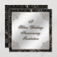 Un diseño de imágenes de Digitalbcon que presenta un tema de color negro y plateado con imágenes personalizadas, formas, patrones, estilos y fuentes en esta tarjeta de invitación para el aniversario de plata única en su tipo. Viene completo con un diseño complementario en el reverso con letra de texto personalizable para adaptarse a su ocasión especial.
