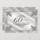 Un diseño de imágenes Digitalbcon con un tema de color plata platino con una variedad de imágenes personalizadas, formas, patrones, estilos y fuentes en esta tarjeta de invitación "Aniversario de bodas de diamante" única. Esta elegante y atractiva tarjeta de invitación viene completa con un diseño complementario en el reverso con letras de texto personalizadas para adaptarse a su ocasión especial.