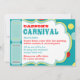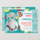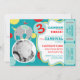 Un elefante de circo divertido usando un gorra de cumpleaños que balancea sobre una plantilla de bolas para la foto insertada con boletos de polika azul brillante, azul polvoriento, rojo y amarillo en un lado. ¡Solamente perfora los lados para una fácil extracción!