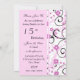 Carta de invitación para fiestas de 15 años con elegante estampado floral blanco y rosa, delicado y elegante con divertidos remolinos. Personalizable con los datos de su fiesta.