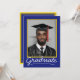Celebra el hito de tu graduación con esta elegante tarjeta de invitación para graduación de personalizable. Con un tema clásico de la escuela azul marino y oro y un espacio para la foto, el nombre, la escuela y los detalles del evento de tu graduado, este diseño ofrece una manera atemporal de invitar a los seres queridos al gran día. ¡Perfecto para graduaciones de secundaria o universitarias! ¡𝐍 𝐎 𝐄! Los colores del fondo y los elementos se pueden cambiar. Sólo asegúrese de ajustarlos en ambos lados, el delantero y el trasero.