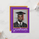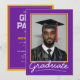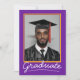 Celebra el hito de tu graduación con esta elegante tarjeta de invitación para graduación de personalizable. Con un tema clásico de la escuela morada y dorada y un espacio para la foto, el nombre, la escuela y los detalles del evento de tu graduado, este diseño ofrece una manera atemporal de invitar a los seres queridos al gran día. ¡Perfecto para graduaciones de secundaria o universitarias! ¡𝐍 𝐎 𝐄! Los colores del fondo y los elementos se pueden cambiar. Sólo asegúrese de ajustarlos en ambos lados, el delantero y el trasero.