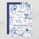 Tarjeta de invitación para la fiesta del décimo aniversario de boda con un elegante patrón floral blanco y azul, delicada y elegante con espirales juguetonas. Personalizable con los detalles de tu fiesta.