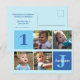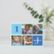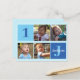 Tarjeta postal de invitación de cumpleaños cuadrada genial para bebé niño o niño pequeño. Celebre el cumpleaños de su hijo con fotos lindas de ellos en esta tarjeta postal con su propia fotografía con cuadrados azules adorables. Agregue su nombre y edad.