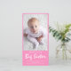 Cute estamos esperando la tarjeta de Invitación de embarazo fotográfico Gran Hermana con rosa en la parte trasera.