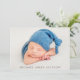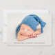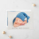 Anuncie la llegada de su bebé con nuestro simple anuncio de nacimiento, que incluye una foto horizontalmente de su pequeño con su nombre bellamente puesto en una fuente serif gris. Puedes personalizar la invitación con el apellido y el medio de tu bebé. En la parte de atrás, hay espacio para una imagen adicional, junto con estadísticas de nacimiento y un mensaje personal.