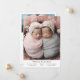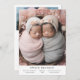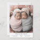 Tarjeta de anuncio de nacimiento minimalista y directa con la frase "bendecido dos veces". ¡Esta es una tarjeta de anuncio de nacimiento para mellizos! ¡Añade tus fotos, estadísticas de nacimiento y un mensaje! Haga clic en el botón de edición/personalización para personalizar de este diseño.