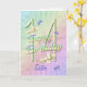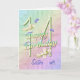 Un arcoiris de colores, flores rosadas y mariposas de lavanda llenan a este chica 14ª tarjeta de cumpleaños feliz con alegría por su hermana. El nombre delantero y el verso interior pueden personalizarse utilizando la plantilla proporcionada. Diseño original de Anura Design Studio.