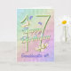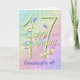 Un arcoiris de colores, flores rosadas y mariposas de lavanda llenan a este chica la 17ª tarjeta de cumpleaños feliz con alegría para su nieta. El nombre delantero y el verso interior pueden personalizarse utilizando la plantilla proporcionada. También puedes disfrutar de los regalos a juego y otros productos disponibles en mi tienda. Diseño original de Anura Design Studio.