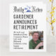 Tarjeta de Jubilación Gardener en forma de Periódico. Tarjeta de retiro de jardinero. Su elección de nombre y la foto añadidas como la persona que se retira.