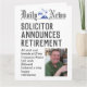 Tarjeta de jubilación en forma de periódico. Jubilación de Solicitor.