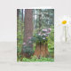 Una atenta tarjeta de jubilación que presenta la imagen fotográfica de un bosque tranquilo y perenne con hermosas flores de Rhododendron rosadas que crecen en un tocón de árbol. Seleccione entre tarjeta de estilo mate o brillante.