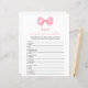 Tarjeta de juego Baby Shower Bow rosa doble latera