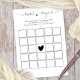 Tarjeta de juego blanca y negra con ducha de Bingo de novia. Disponible digitalmente o impreso. El bingo nupcial se encuentra en un elegante guión con motivos de anillo y corazón y el resto del texto que puede personalizar fácilmente. También puede cambiar el texto y los colores de fondo en ambos lados si lo desea a través de la opción Personalizar adicional.