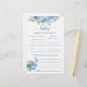 Tarjeta de juego de consejos y predicciones de hidrangea azul acuarela. Elementos coincidentes disponibles.