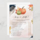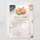Diseñada para nuestra colección de Baby Shower Little Pumpkin, esta tarjeta de juego personalizable Mommy or Daddy incluye fondo rosa rubor, calabaza verde y naranja, texto rosa de purpurina dorado y hojas de oro con letra manuscrita. Elementos coincidentes disponibles.
