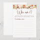 Eleva tu despedida de soltera de otoño con nuestra tarjeta de juego "Boho Flowers Who Am I", que combina encanto rústico con estilo boho chic. Los invitados disfrutarán adivinando sus personajes asignados en medio de un fondo de motivos florales, lo que añade un toque divertido y personalizable a tu celebración. Perfecto para una última diversión antes del anillo, este juego promete risas y entretenimiento mientras los invitados participan en esta actividad interactiva y divertida.
