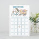 Deléitese con sus invitados con este divertido juego de bingo de ducha de bebé que incluye un erizo acuático en una bicicleta azul, jalando un vagón floral bajo un cartel de "Bingo de Bebé". Los invitados rellenan cada plaza con ideas de regalo, y luego las marcan durante la apertura del regalo — ¡primero a cinco ganadores seguidos! Un juego perfecto para las duchas infantiles de temática masculina, de jardín o de bosque.