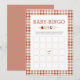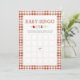 Agrega un toque divertido e interactivo a tu baby shower con esta encantadora tarjeta de Baby Bingo. Con un encantador tema de Baby-Q rústico, este diseño presenta un fondo de gingham marrón apagado combinado con un pincho de acuarela adorable, la mezcla perfecta de acogedor y adorable. Los invitados rellenan los cuadrados con los regalos que creen que la futura mamá recibirá, luego los marcan mientras ella abre sus regalos. ¡El primero que obtenga cinco seguidos gana!