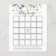 Tarjeta de bingo con ducha de bebé con cascada de flores silvestres y vegetación con una abeja zumbante. Una manera divertida de interactuar con los invitados de la ducha mientras la futura mamita abre sus regalos.