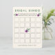 El clásico juego de bingo para despedida de soltera en una tarjeta bonita con una flor de pansy de acuarela púrpura y acentos botánicos verdes. Coordina con nuestra colección Pansy Púrpura de invitaciones y accesorios para despedida de soltera.