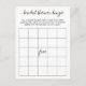 Tarjeta de juego de bingo para fiesta de despedida