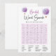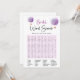Presentamos nuestra tarjeta de juego de búsqueda de palabras de globo aerostático mariposa, un complemento encantador para tu ducha de novia o despedida de soltera. Con tonos lilas encantadores, caligrafía elegante y elementos caprichosos como mariposas, flores y globos aerostáticos, esta tarjeta de juego ofrece una actividad de búsqueda de palabras divertida y atractiva para que los invitados disfruten. Agrega un toque de emoción a tu celebración con esta tarjeta de juego única y entretenida.