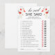 Tarjeta de juego de ducha nupcial floral 'Él dijo