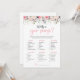 ¡Eleva la diversión en tu despedida de soltera con nuestra tarjeta de juego de flores sonrosadas ¿Qué hay en tu bolso! Reúne tus objetos esenciales y prepárate para una encantadora búsqueda del tesoro en tu bolso en medio de un fondo de hermosas flores y tonos rosados suaves.