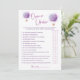 Presentamos nuestra Tarjeta de juego "Over & Under" de globos lila Mariposas, un encantador complemento para tu ducha de novia o despedida de soltera. Con elegante caligrafía, mariposas caprichosas y globos aerostáticos lila, esta tarjeta de juego invita a los invitados a adivinar para divertirse. Agrega un toque de emoción a tu celebración con esta atractiva tarjeta de juego.
