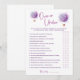 Presentamos nuestra Tarjeta de Juego "Sobre & Bajo" de Globos Lila Mariposas, un encantador complemento para tu despedida de soltera o fiesta de boda. Con caligrafía elegante, mariposas caprichosas y globos aerostáticos lilas, esta tarjeta de juego invita a los invitados a adivinar para divertirse. Agrega un toque de emoción a tu celebración con esta divertida tarjeta de juego.