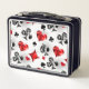 Fondo gris, texturado con símbolos de cartas de juego poligonales. Símbolos de cartas de juego, corazón, diamantes, pala y club.