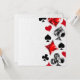 Fondo gris, texturado con símbolos de cartas de juego poligonales. Símbolos de cartas de juego, corazón, diamantes, pala y club.