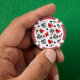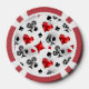 Fondo gris, texturado con símbolos de cartas de juego poligonales. Símbolos de cartas de juego, corazón, diamantes, pala y club.