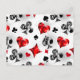 Fondo gris, texturado con símbolos de cartas de juego poligonales. Símbolos de cartas de juego, corazón, diamantes, pala y club.