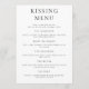 Tarjeta de juego de la actividad del menú del Boda de diversión besando. Disponible digitalmente e impreso. Actividad divertida para el boda. Totalmente personalizable. Personalice fácilmente las palabras según sea necesario.