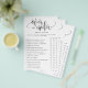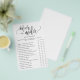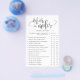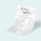 Diviértase en su ducha con este divertido juego de "sobre-abajo" Añada sus propias declaraciones y texto personalizado usando el formulario de plantilla o déjelas como está. Utilice la función "Personalizar adicional" para cambiar el color de fondo y el encabezado del guión de forma que coincida con el tema del fiesta. Utilice la opción de papel mate para escribir sobre.