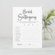 Eleva tu despedida de soltera moderna con nuestra tarjeta de juego "Scattergories" minimalista, agregando un toque de diversión a la celebración. Este juego clásico con tema en blanco y negro fomenta la risa y la creatividad mientras los invitados piensan en palabras dentro de categorías específicas, perfecto para una última diversión antes del anillo. Garantizado ser un éxito, este juego agrega emoción extra a tus festividades de despedida de soltera.