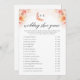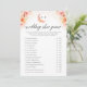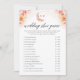 La tarjeta de juego de zapato de boda con flores de melocotón elegante monograma presenta un diseño moderno perfecto para un juego de boda divertido y memorable. Adornada con delicadas flores silvestres de acuarela en tonos suaves de melocotón, esta tarjeta muestra las iniciales de la novia y el novio en un monograma elegante. Ideal para bodas de otoño, añade un toque de sofisticación a tu día especial.