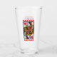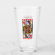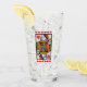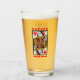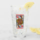 Este vaso para bebidas tiene una lujosa reina de corazón rojo de colores vivos jugando a la carta en un borde negro con una hilera de corazones rojos vibrantes encima y debajo de ella en el frente y la espalda.