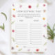 Tarjeta de juego Floral Bridal Shower Adivinage