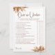 Eleva tu despedida de soltera inspirada en boho con nuestra tarjeta de juego "Hierba de Pampas por Encima y por Debajo", agregando un toque de encanto rústico y emoción a las festividades. Los invitados se divertirán adivinando si ciertos escenarios relacionados con la boda caen por encima o por debajo de los parámetros especificados, todo esto contra un fondo de tonos dorados y acentos de hierba de pampas caprichosos. Perfecta para temas de despedida de soltera boho, este juego promete risas y diversión, creando recuerdos inolvidables para la futura novia y sus invitadas.