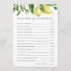 Pruebe el conocimiento de sus huéspedes con esta encantadora tarjeta de juegos "¿Cómo saber a la novia?", que incluye elegantes limones acuarelas y exuberante vegetación. Perfecto para duchas de novias, solteras o fiestas de compromiso. Este juego elegante y divertido es totalmente editable y está disponible impreso o como descarga digital. Una encantadora adición a cualquier celebración con tema de cítricos o jardín de Redwood & Vine Design Co.