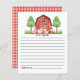 Tarjeta de la cápsula de la hora de cumpleaños de la granja/ Barnyard con respaldo de Gingham roja con cerdo, oveja, vaca y caballo con gorras fiestas.