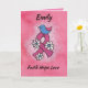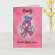 Expresa tus sinceros deseos a una valiente y fuerte sobreviviente de cáncer de mama con un mensaje de "fe, esperanza, amor" en una tarjeta de cinta rosa. La imagen del dulce pájaro y las flores enviará tus pensamientos cariñosos y oraciones.