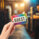 Insignias de encargo de la huésped. Modifiqúela para requisitos particulares con su propio texto. Perfeccione para las escuelas, las universidades, las oficinas o cualquier lugar de trabajo.